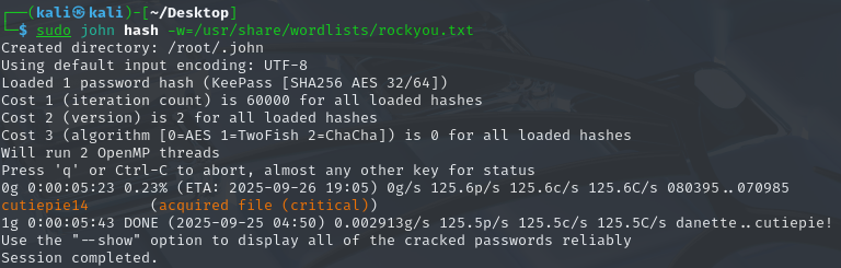 We were also given the backup database and obviously there isn’t mention of the password anywhere. Thus we need to convert the kdbx file to hash using keepass2john