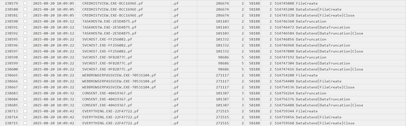 We are also able to confirm that most of the other executables were executed also since creation of the prefetch file was also logged by UsnJournal.